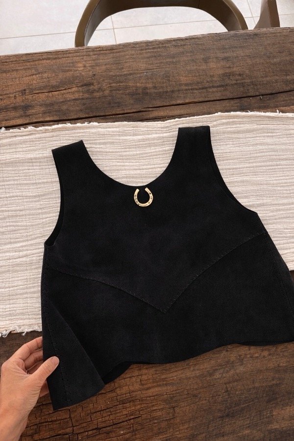 Diseño adaptable para usar arriba de una blusa, polera o sweater, o bien usarla como top sin nada abajo, o haciendo conjunto con una pollera de cuero.
