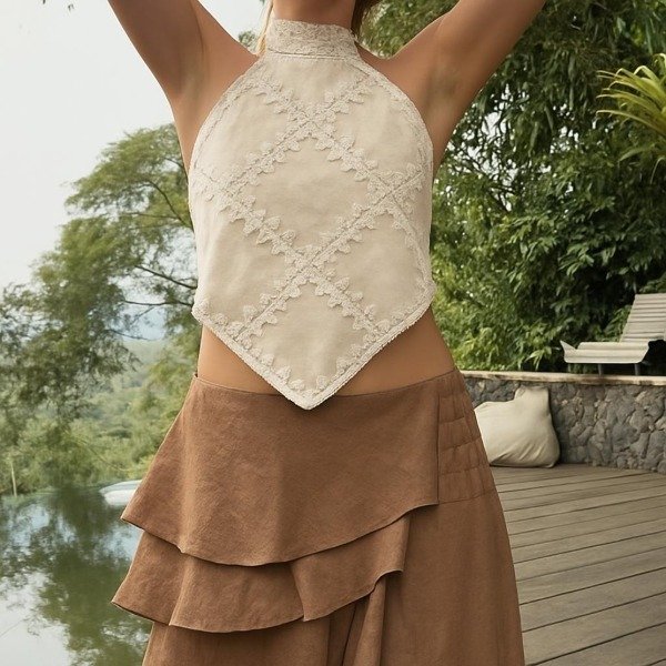 Cuello halter y terminacion en punta. Espalda descubierta.