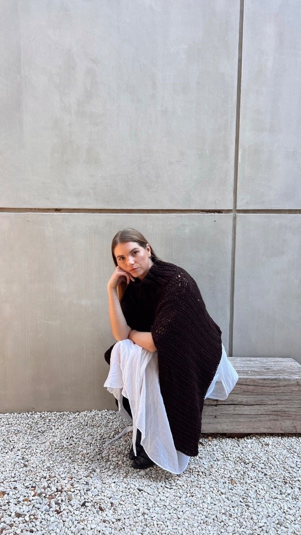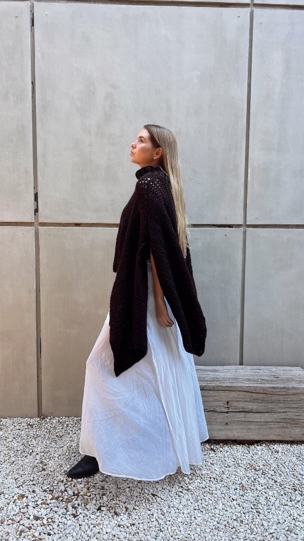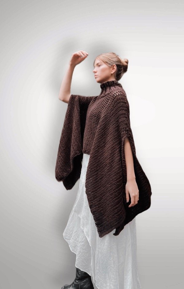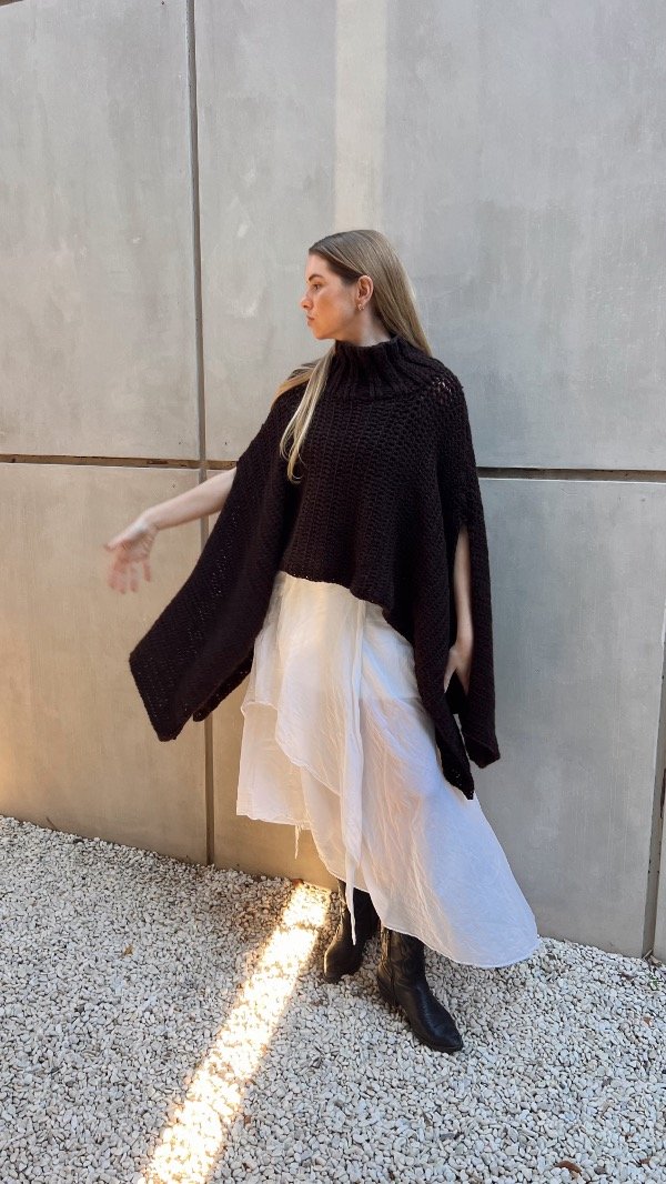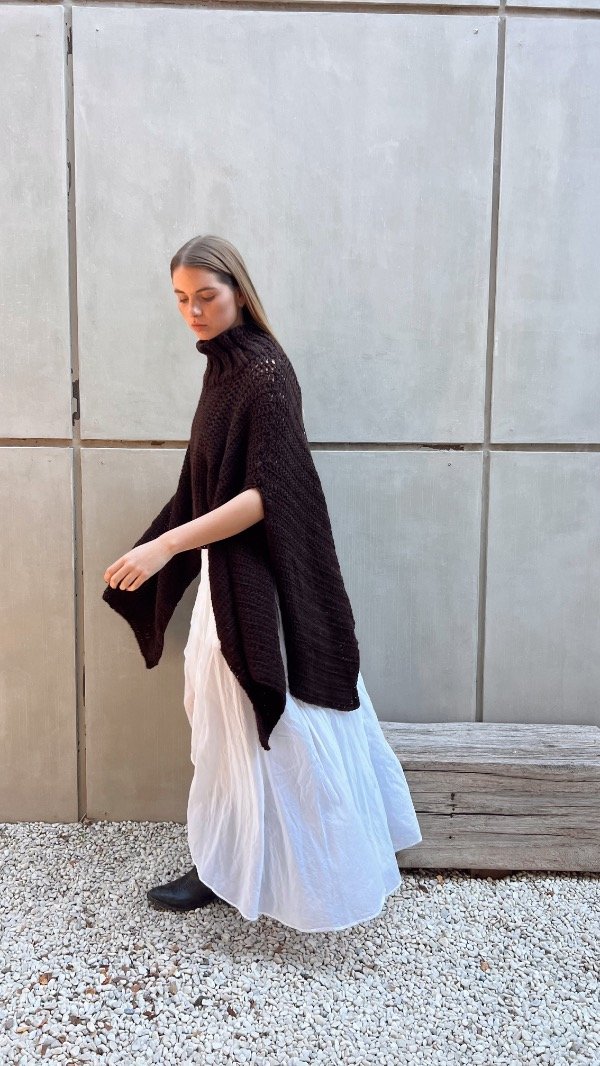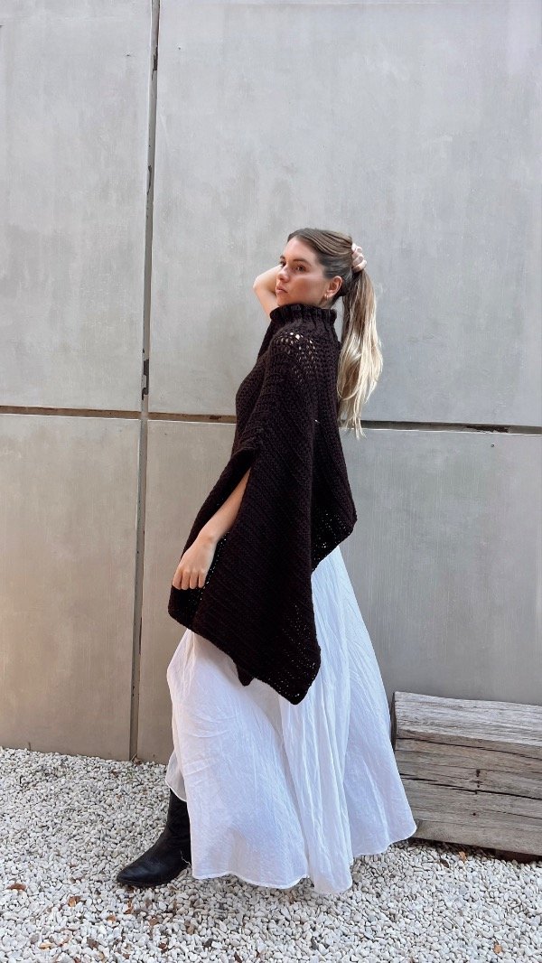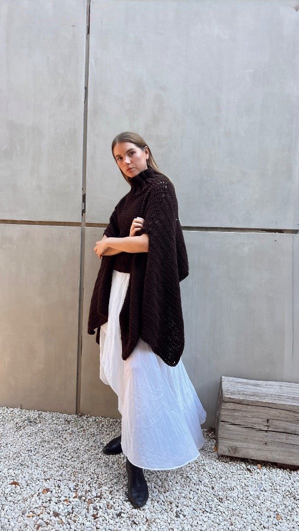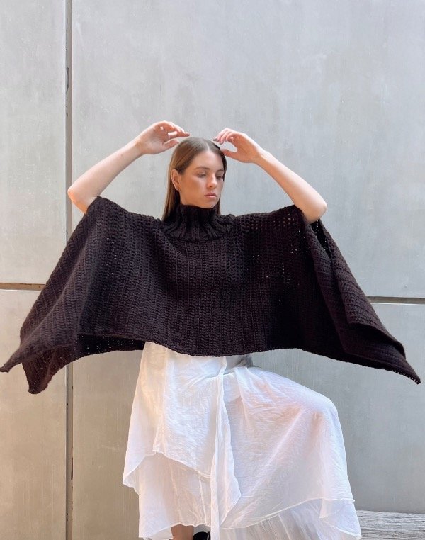 Poncho de lana premium, con cuello alto, sin mangas.