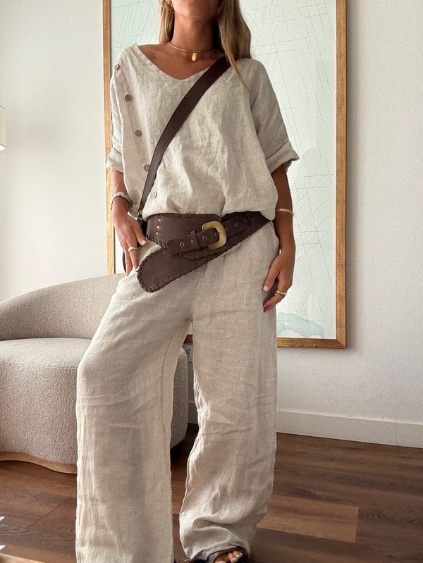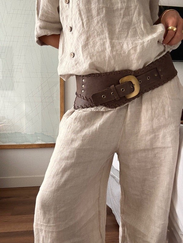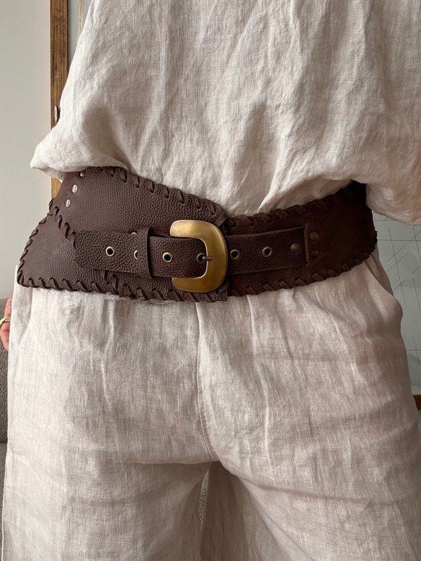 Faja de cuero vacuno color chocolate, con herrajes en bronce.
